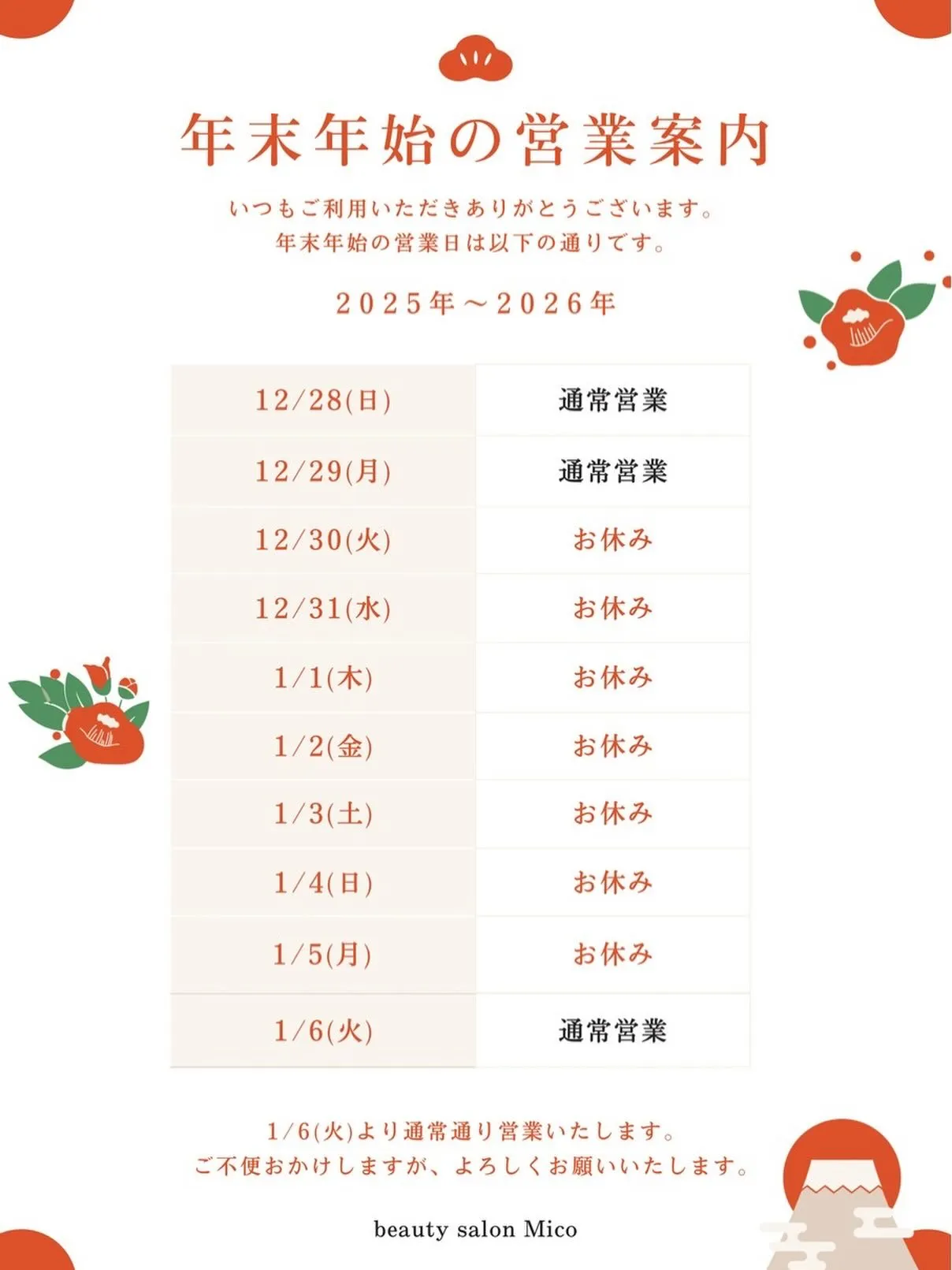 来年も beauty salon Mico をどうぞよろしくお願いいたします。